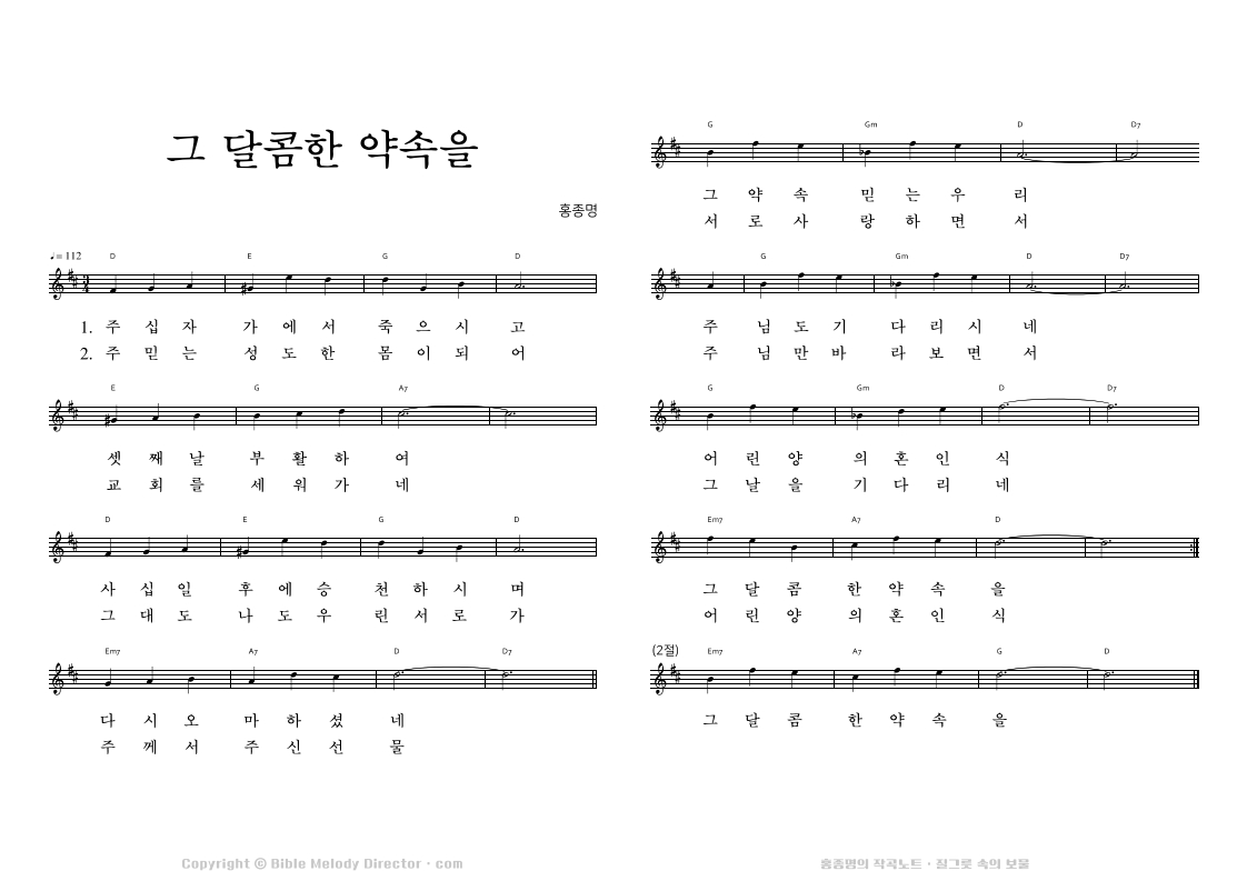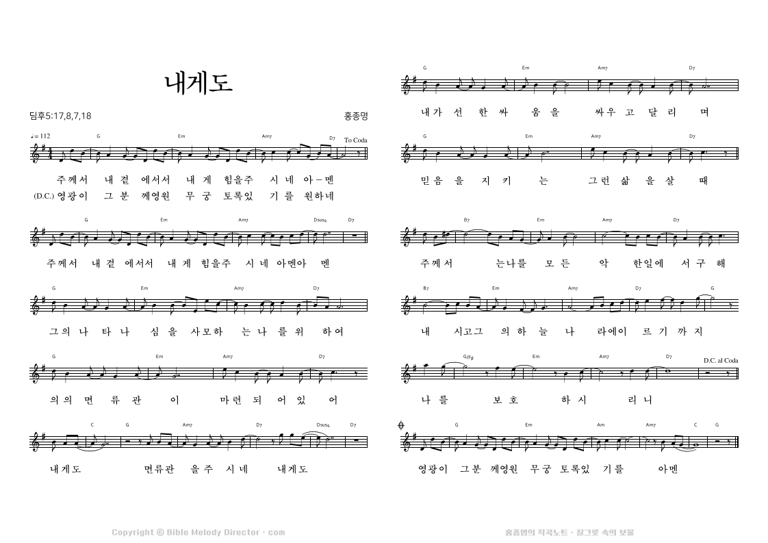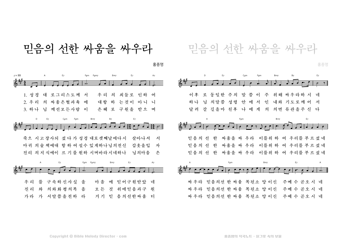 디모데후서 4:17,8,7,18의 성경 가사에 홍종명이 곡을 짓다. 19971127