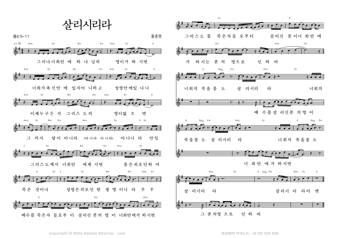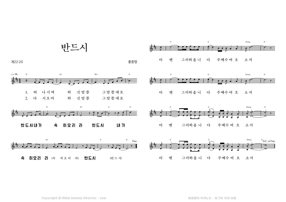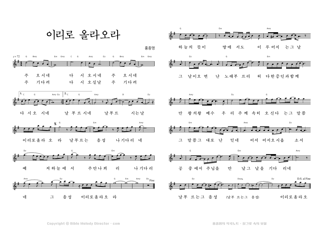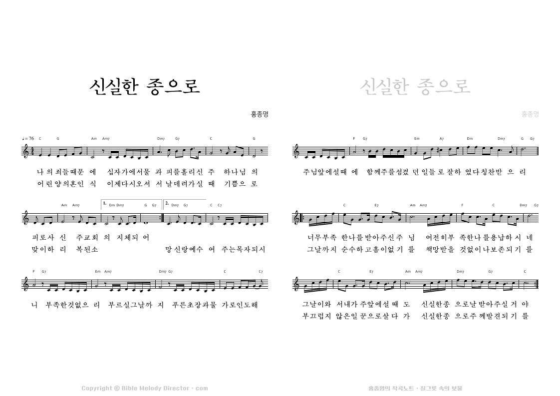 디모데후서 4:17,8,7,18의 성경 가사에 홍종명이 곡을 짓다. 19971127