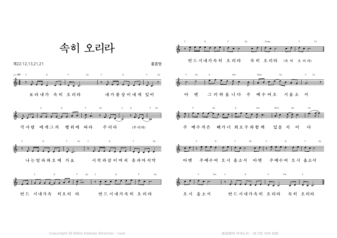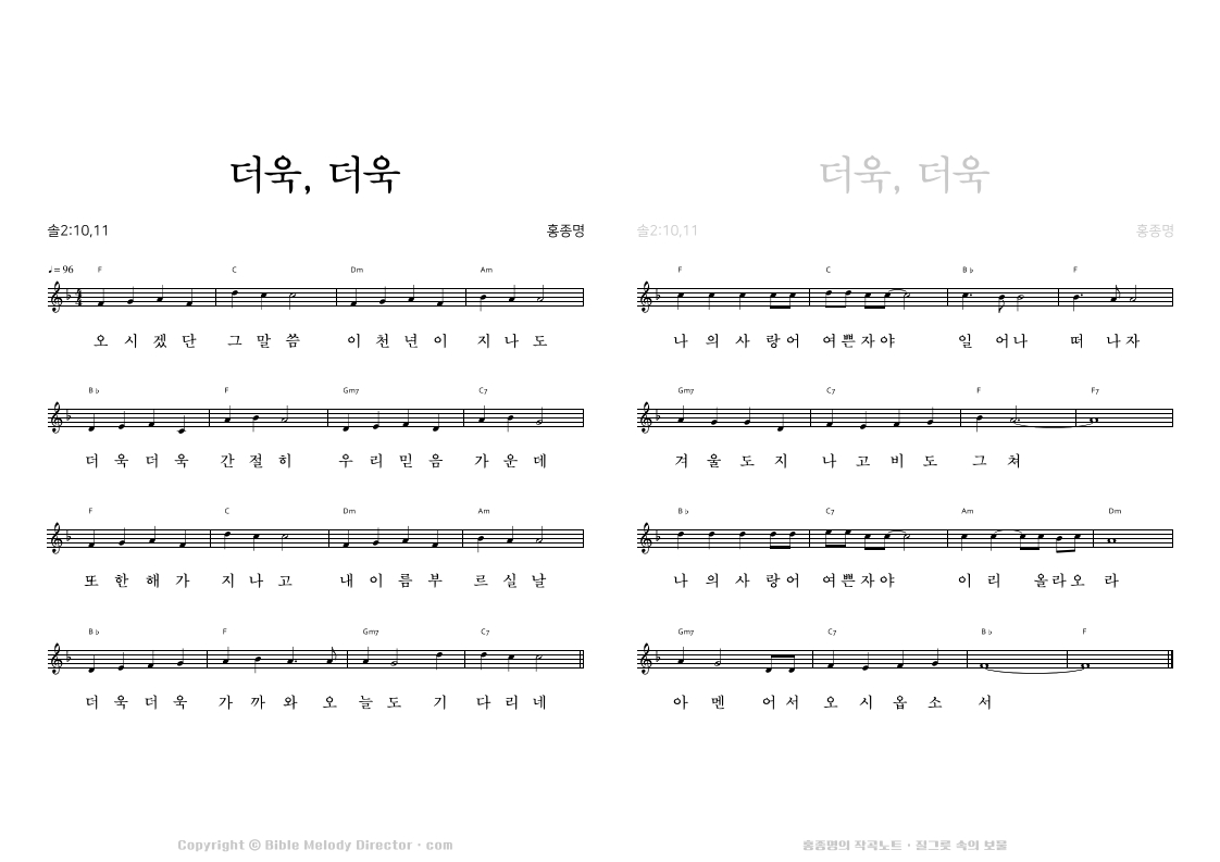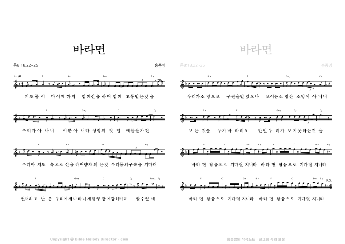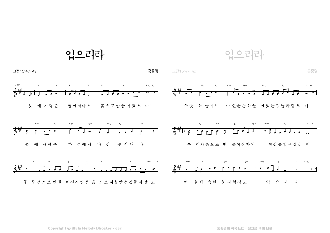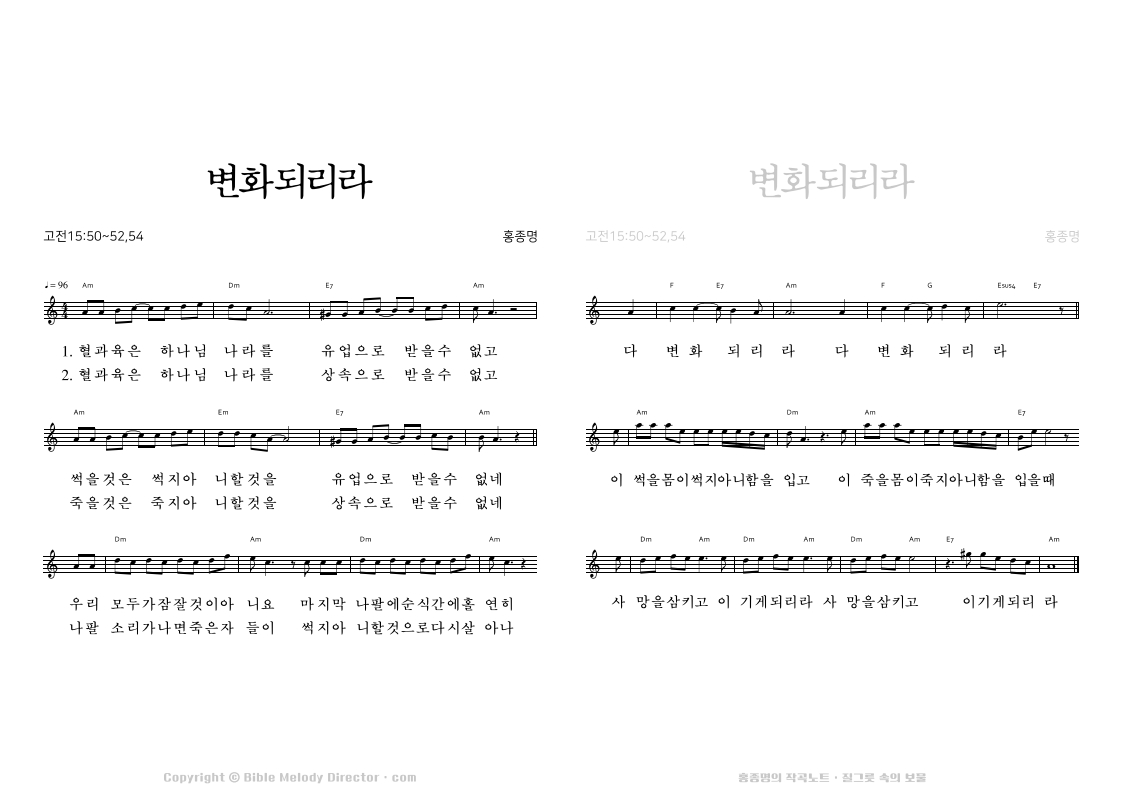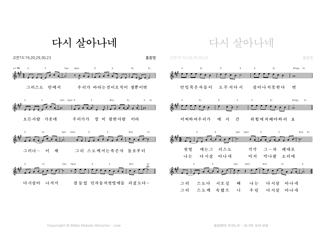 고린도전서 15:19,20,29,30,23의 성경 가사에 홍종명이 곡을 짓다. 19960108