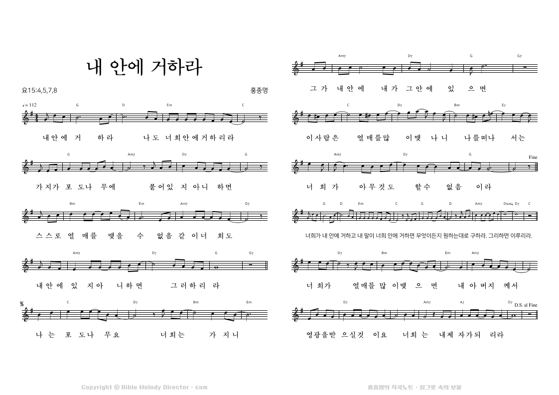 요한복음 15:4,5,7,8의 성경 가사에 홍종명이 곡을 짓다. 19951210