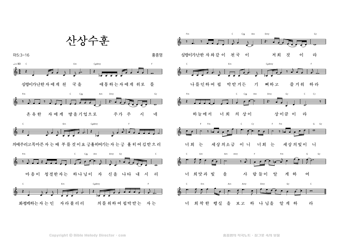마태복음 5:3~16의 성경 가사에 홍종명이 곡을 짓다. 19921220