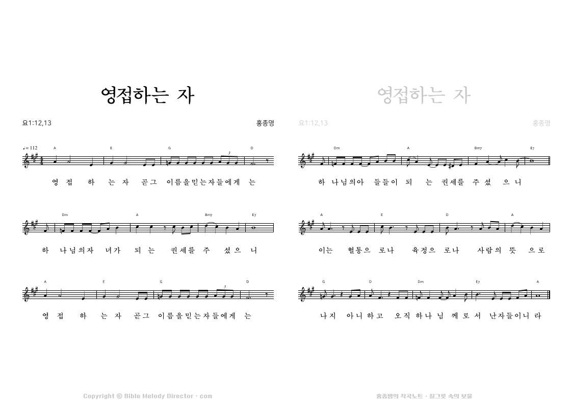 요한복음 1:12,13의 성경 가사에 홍종명이 곡을 짓다. 19951208