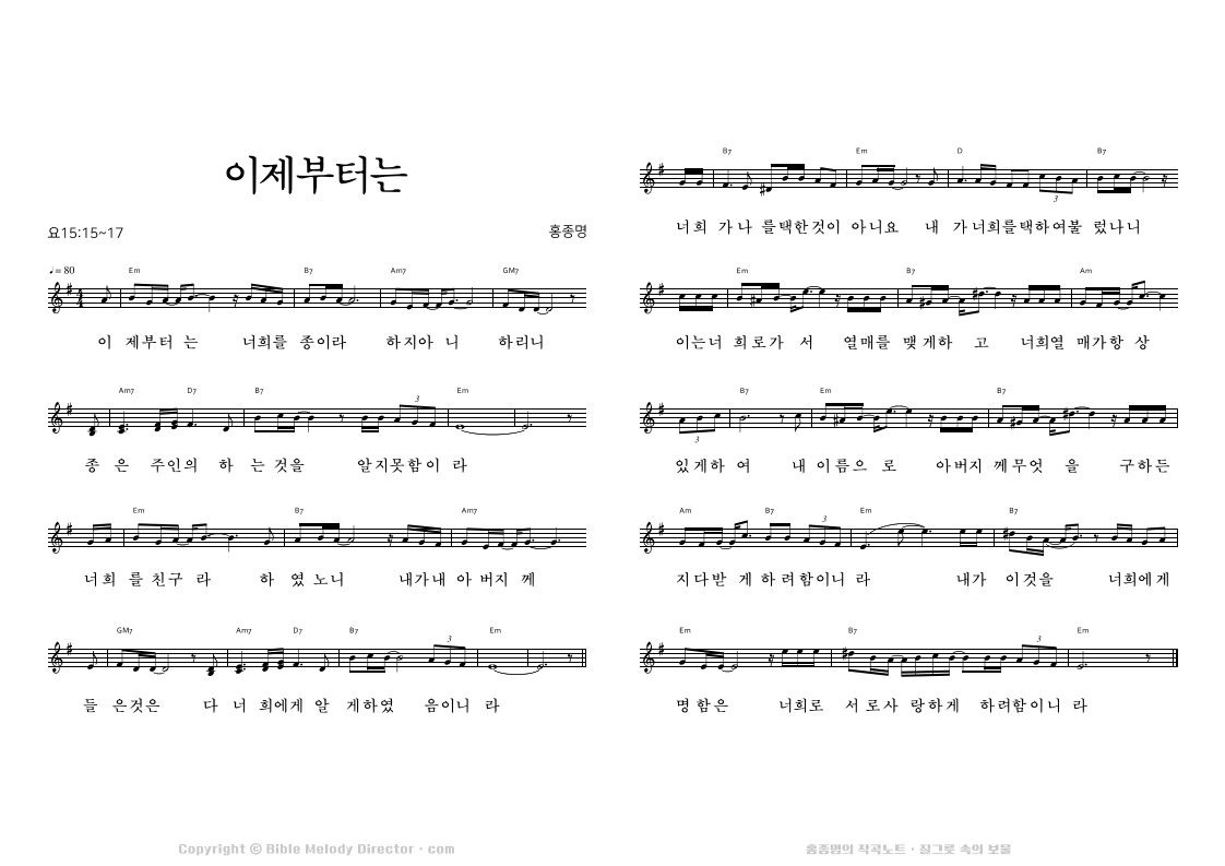 요한복음 15:15~17의 성경 가사에 홍종명이 곡을 짓다. 19951211