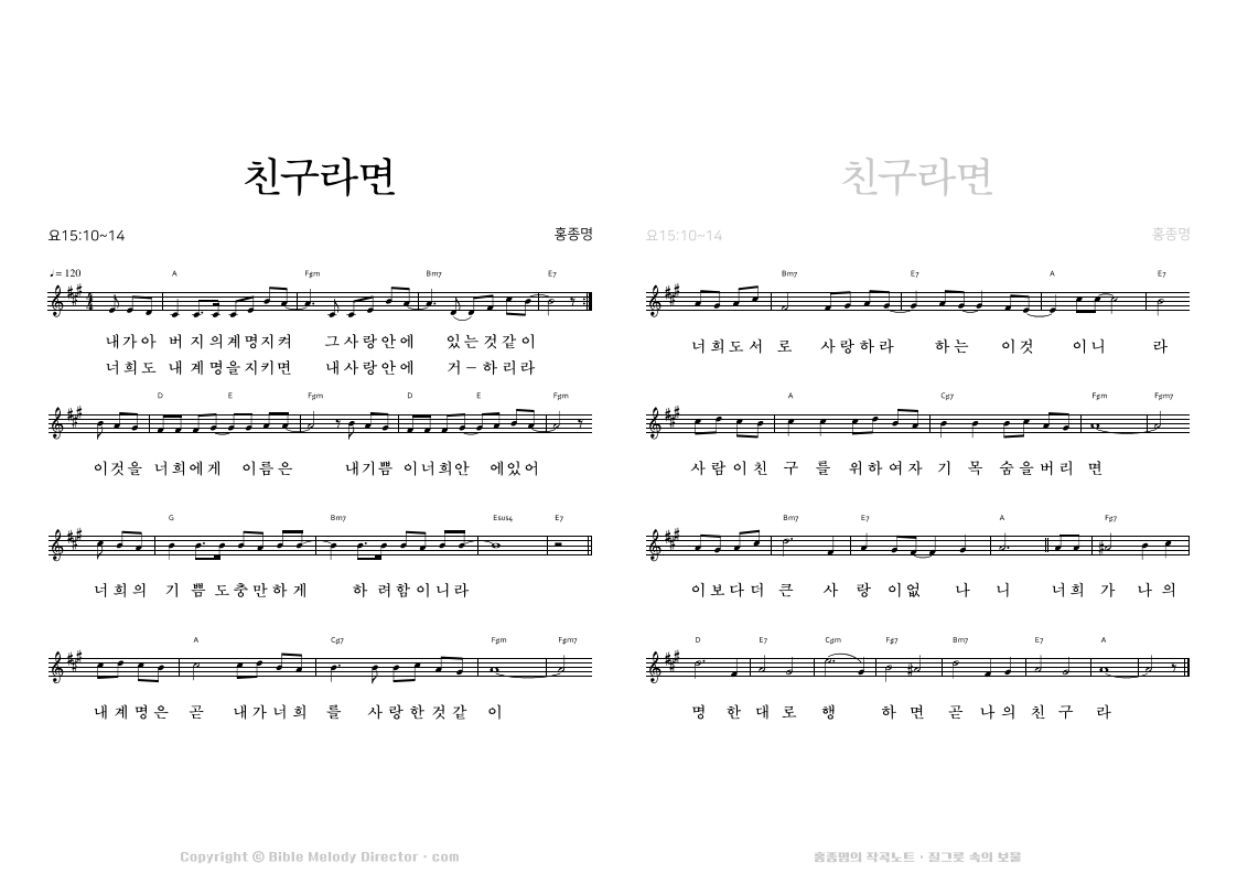 요한복음 15:10~14의 성경 가사에 홍종명이 곡을 짓다. 19951210