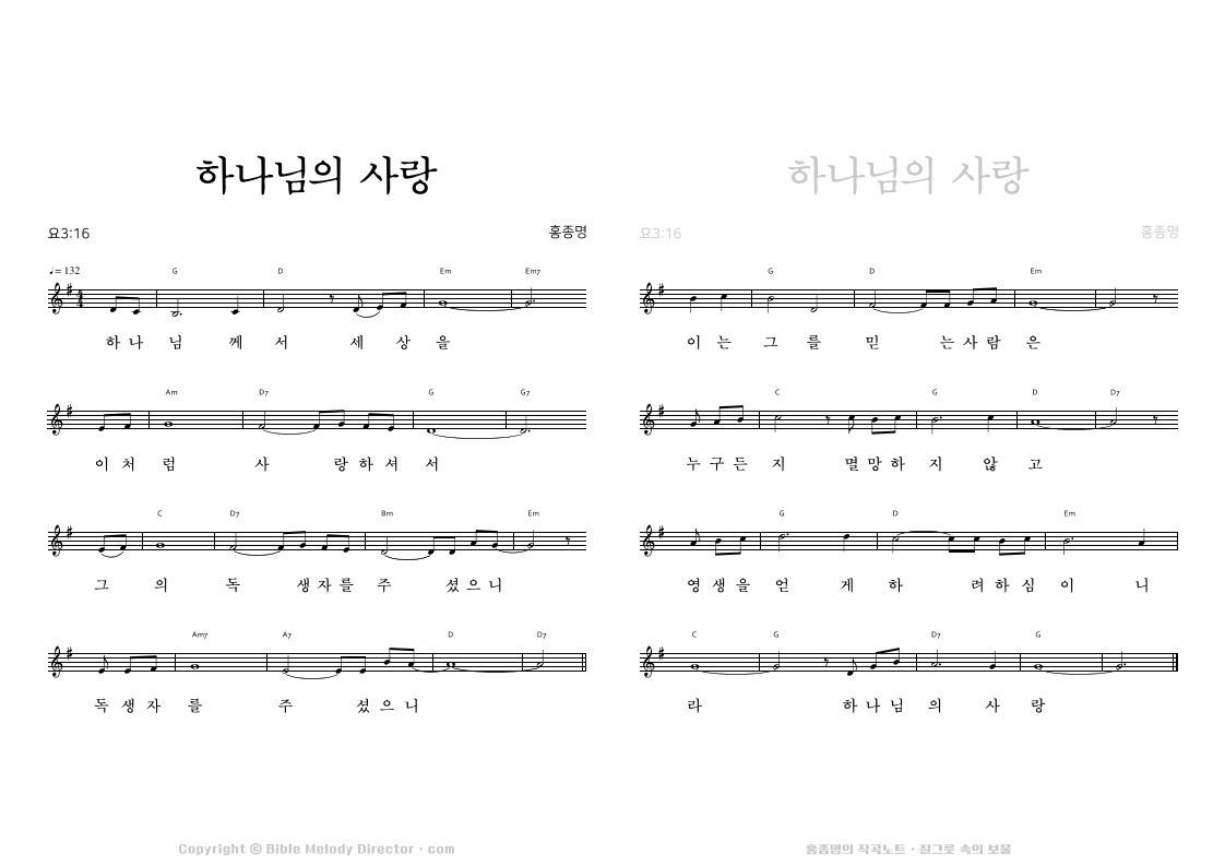요한복음 3:16의 성경 가사에 홍종명이 곡을 짓다. 20060405