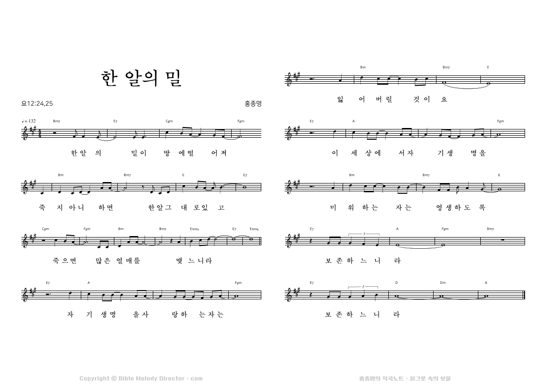 요한복음 12:24,25의 성경 가사에 홍종명이 곡을 짓다. 19951208