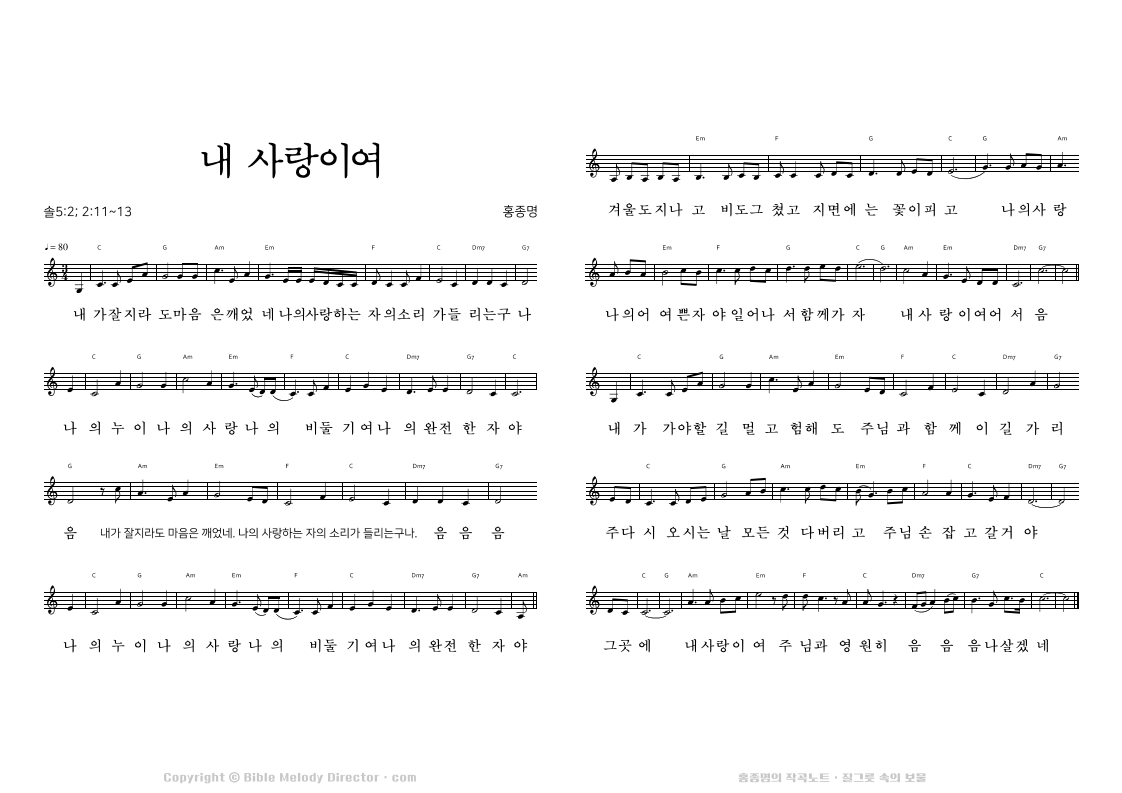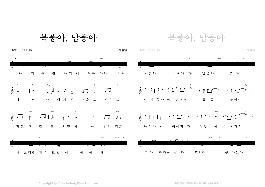 솔로몬의 노래 2:10,11과 4:16의 성경 가사에 홍종명이 곡을 짓다. 19951111