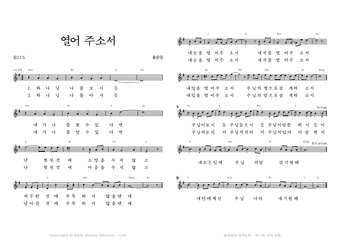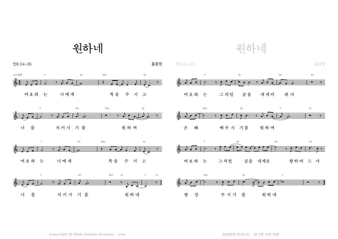 민수기 6:24~26의 성경 가사에 홍종명이 곡을 짓다. 19910128