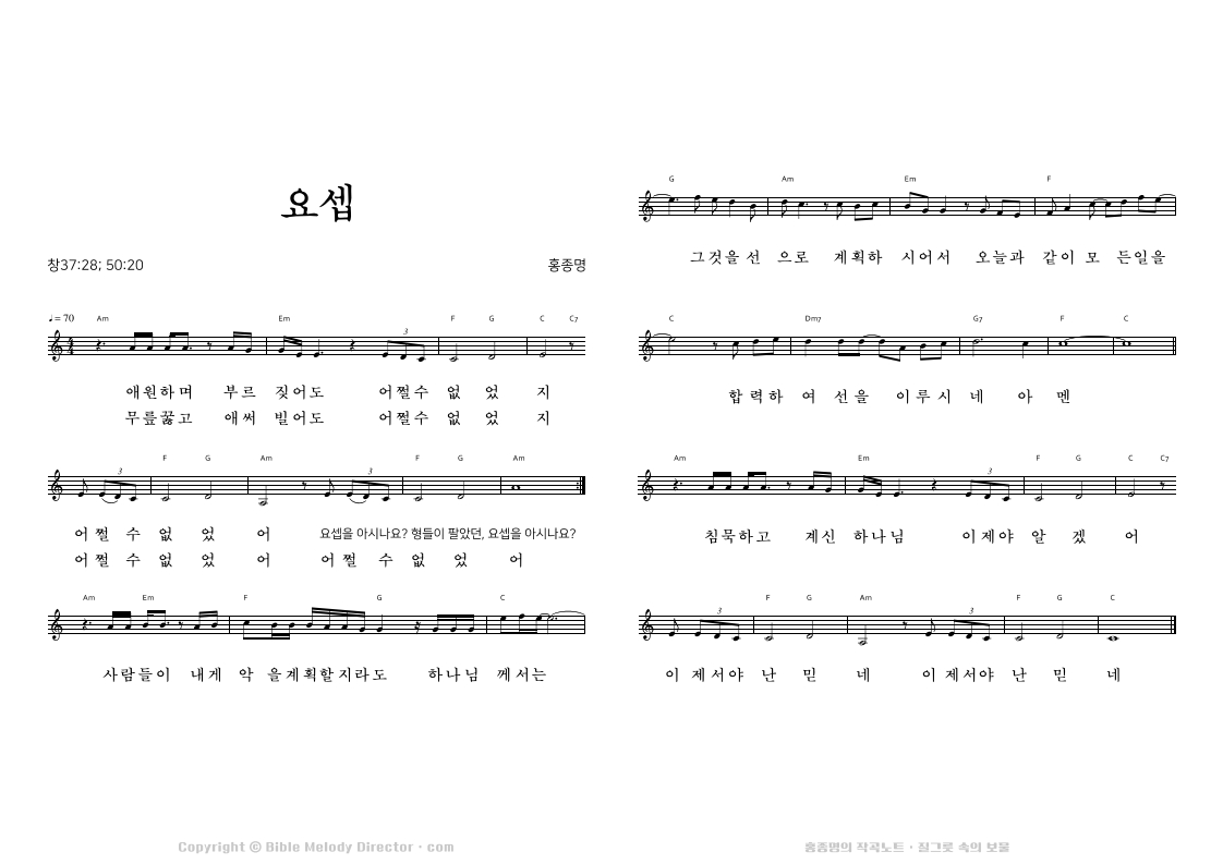 창세기 37:28과 50:20의 성경으로 홍종명이 시와 곡을 짓다. 20010505