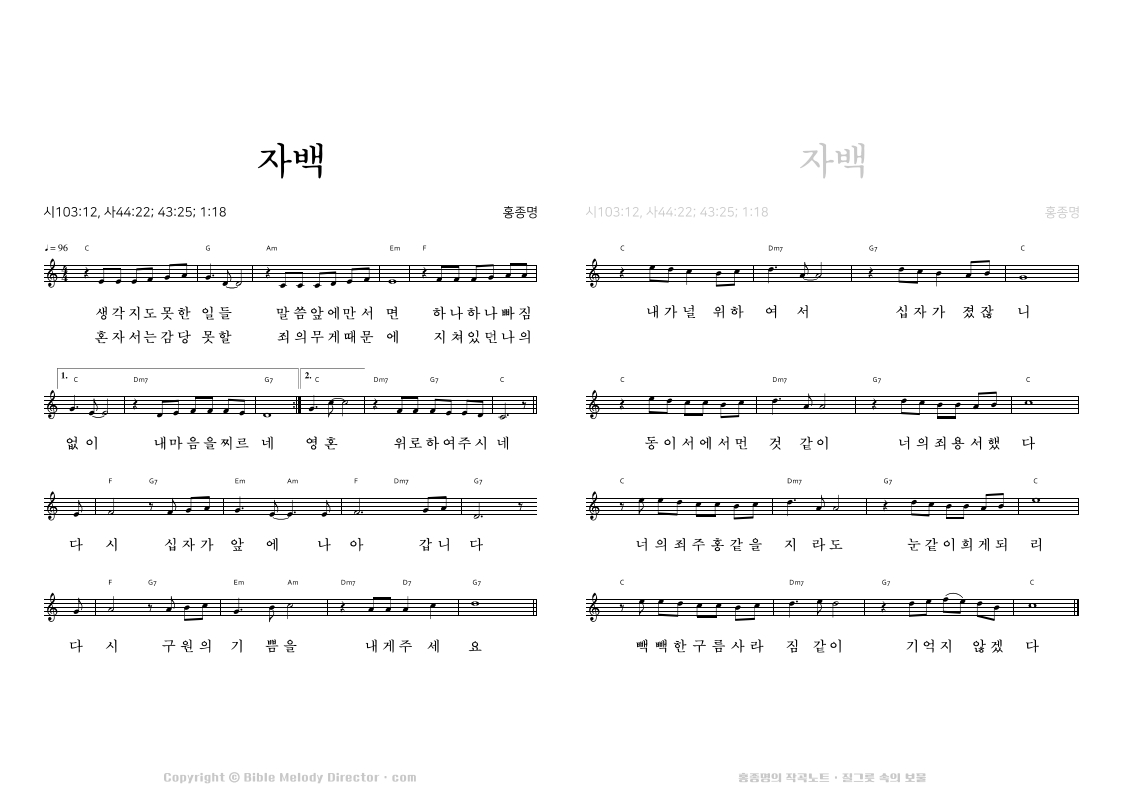 시편 103:12, 이사야 44:22과 43:25과 1:18의 성경으로 홍종명이 시와 곡을 짓다. 19890610