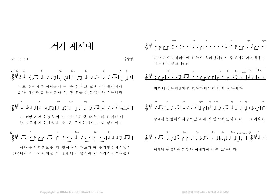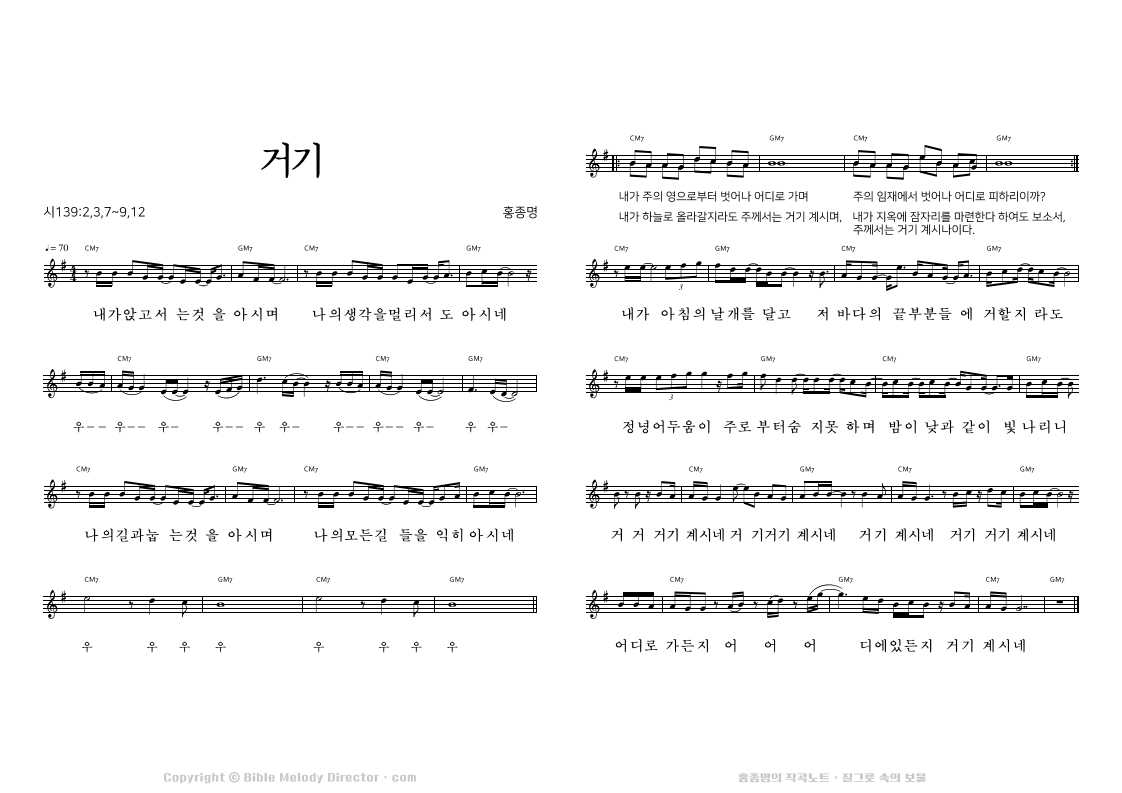 시편 139:2,3,7~9,12의 성경 가사에 홍종명이 곡을 짓다. 19970917
