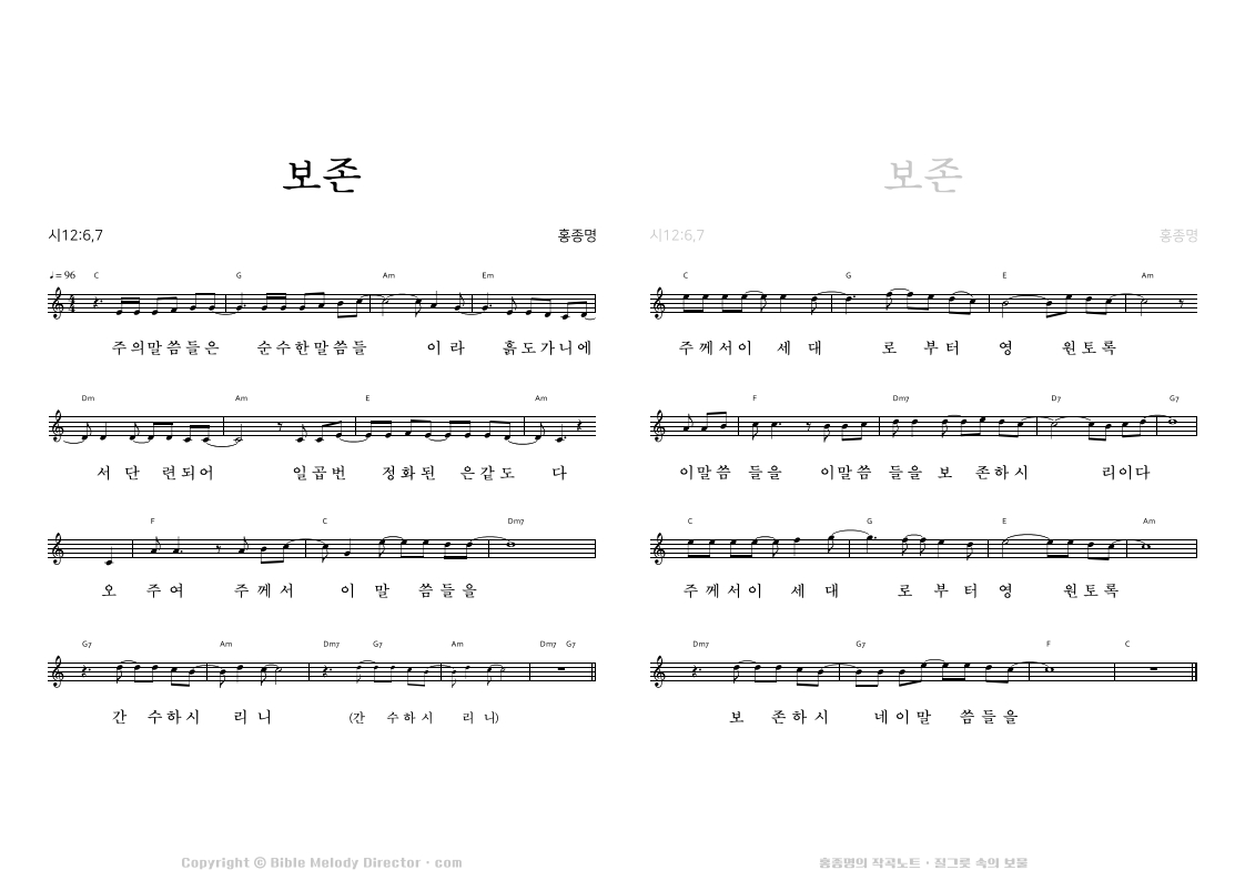 시편 12:6,7의 성경 가사에 홍종명이 곡을 짓다. 19970110