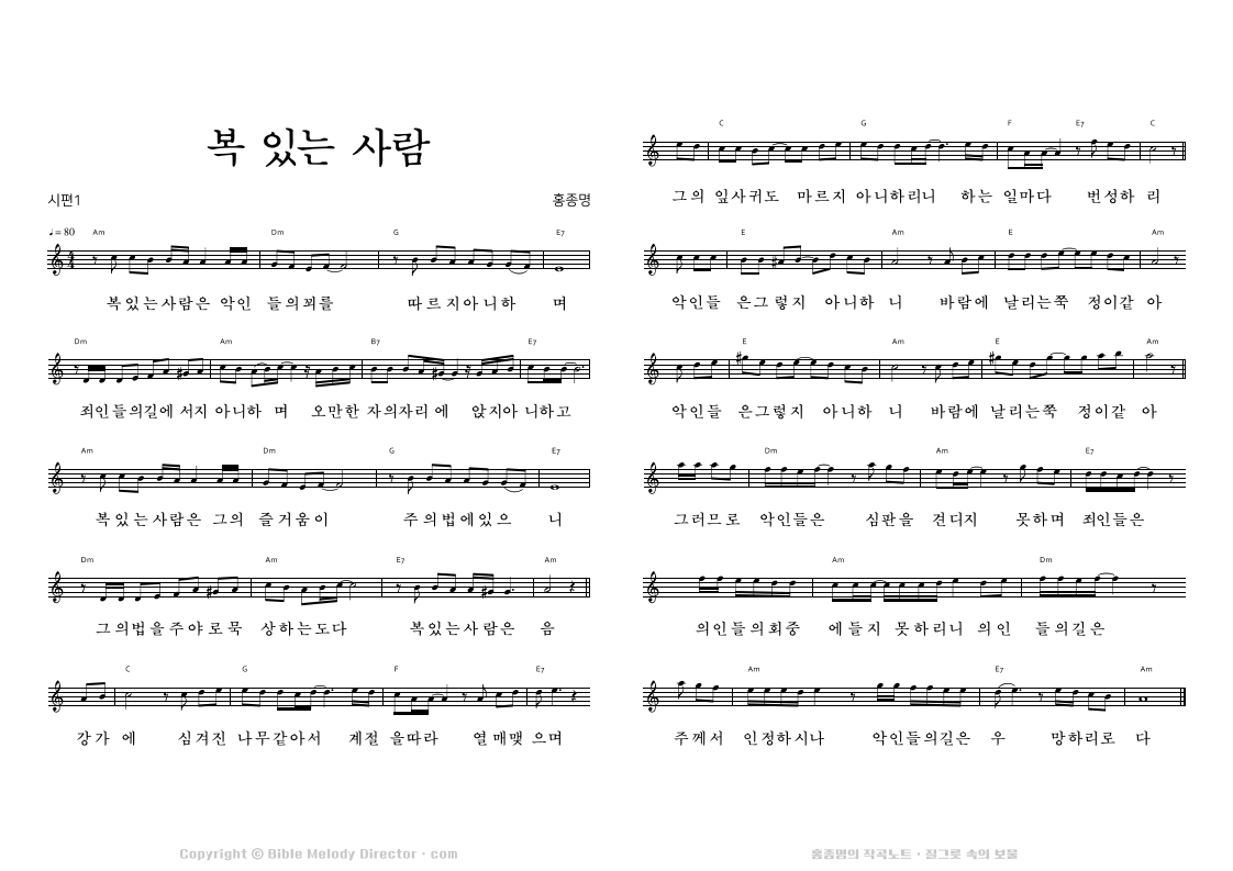시편 1편의 성경 가사에 홍종명이 곡을 짓다. 19951228