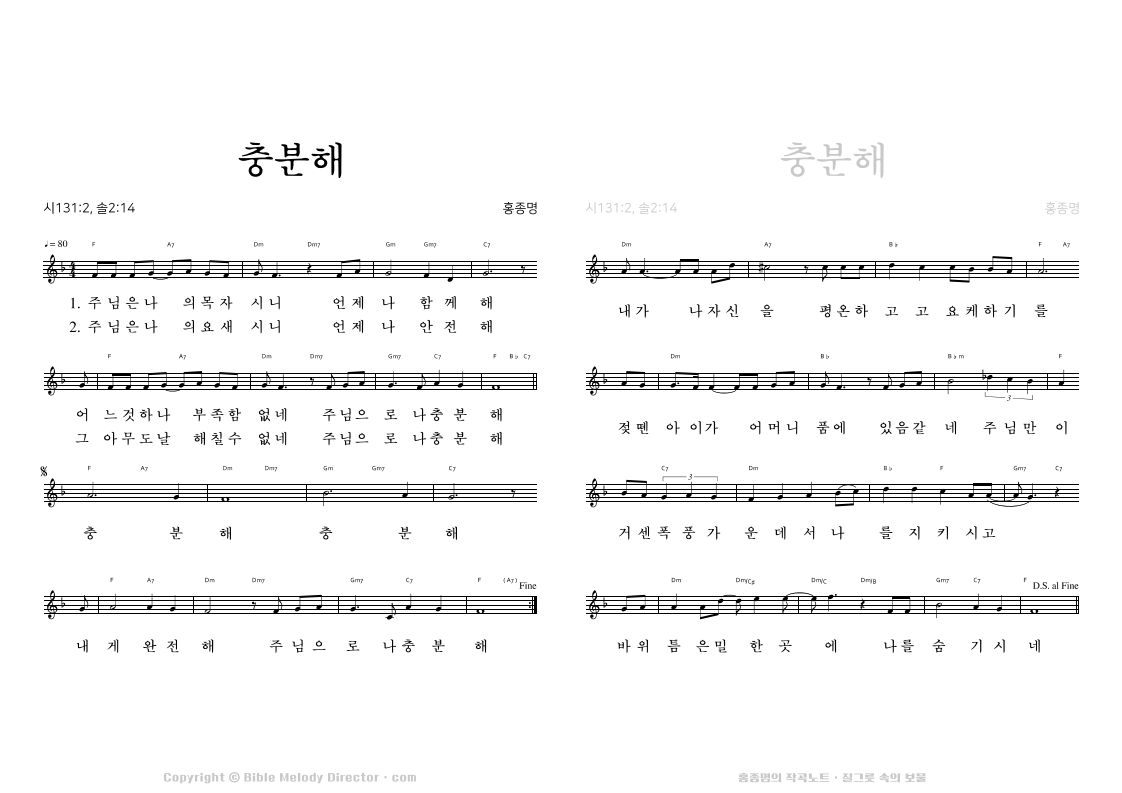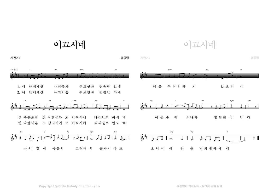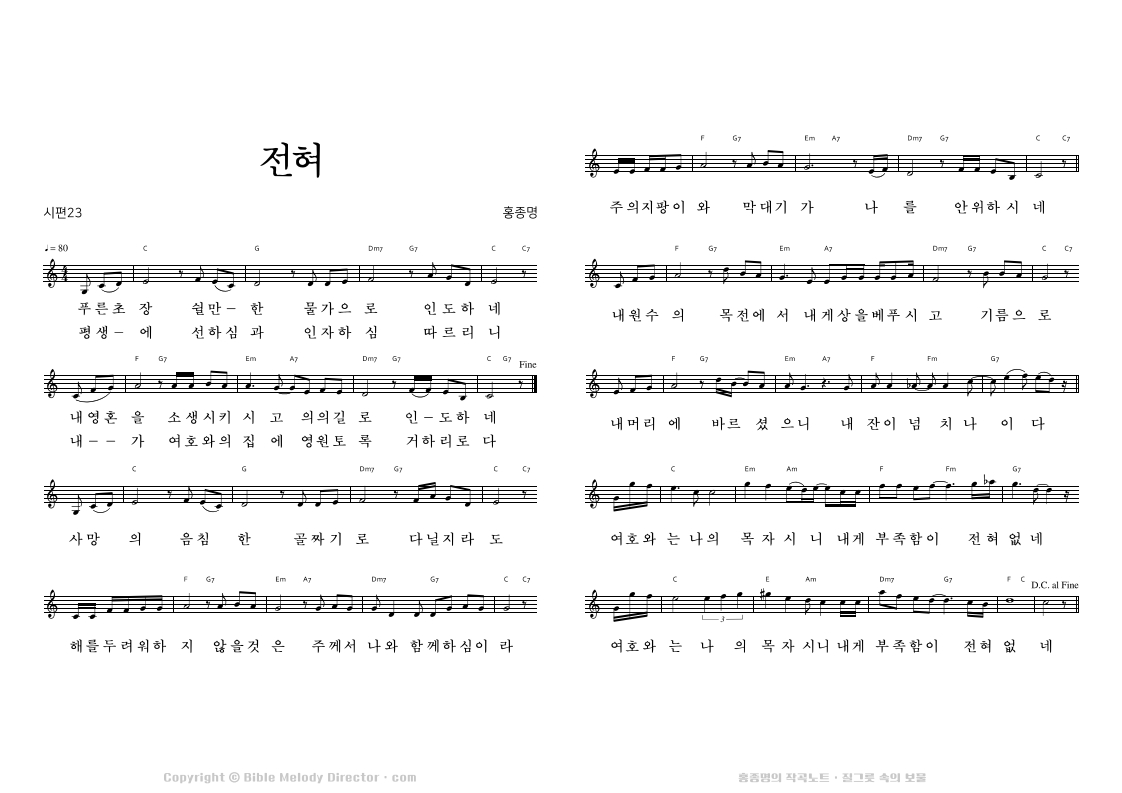 시편 23편의 성경으로 홍종명이 곡을 짓다. 19970628