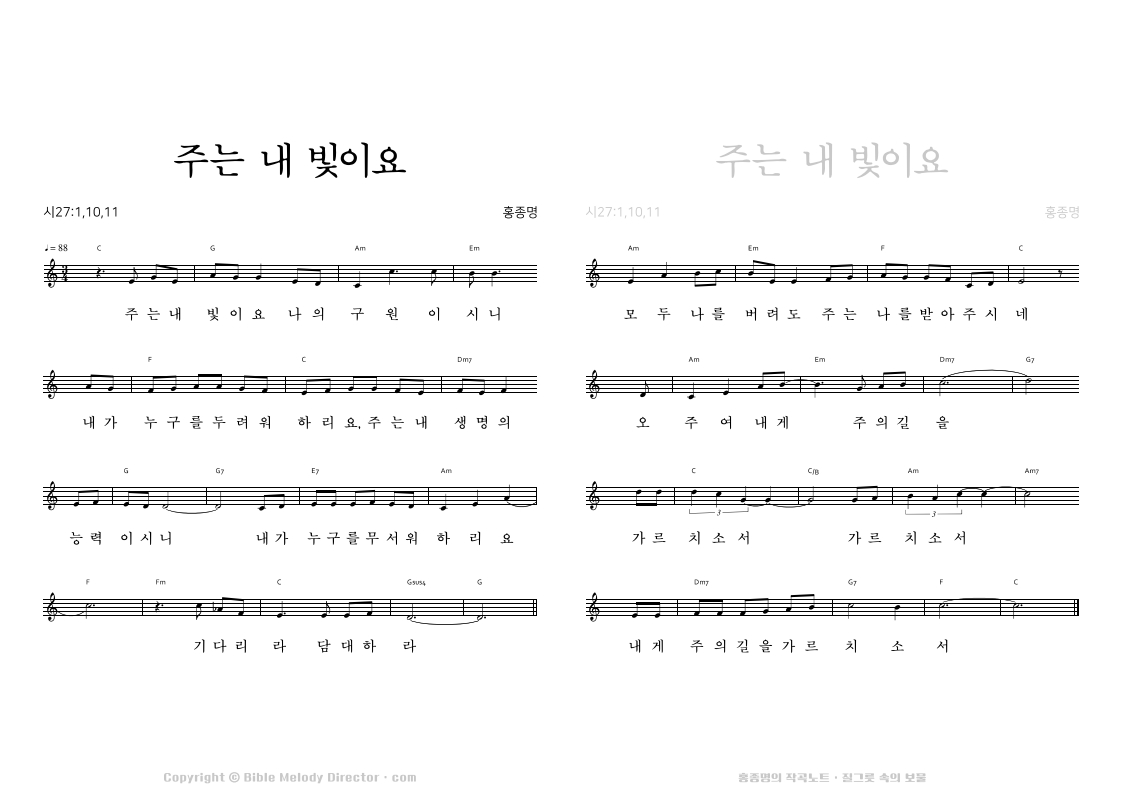 시편 27:1,10,11의 성경 가사에 홍종명이 곡을 짓다. 19980831