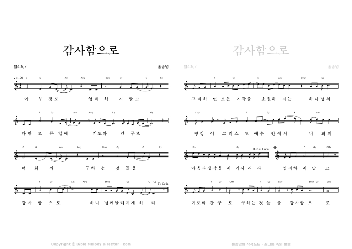 빌립보서 4:6,7의 성경 가사에 홍종명이 곡을 짓다. 19951110