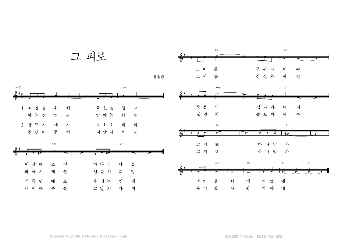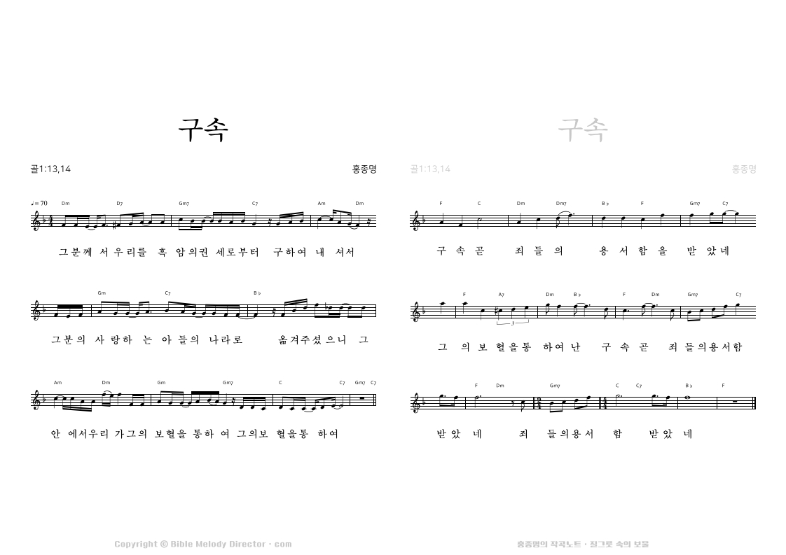 골로새서 1:13,14의 성경 가사에 홍종명이 곡을 짓다. 19961010