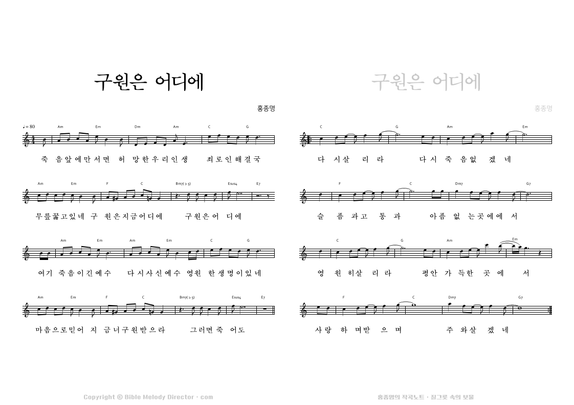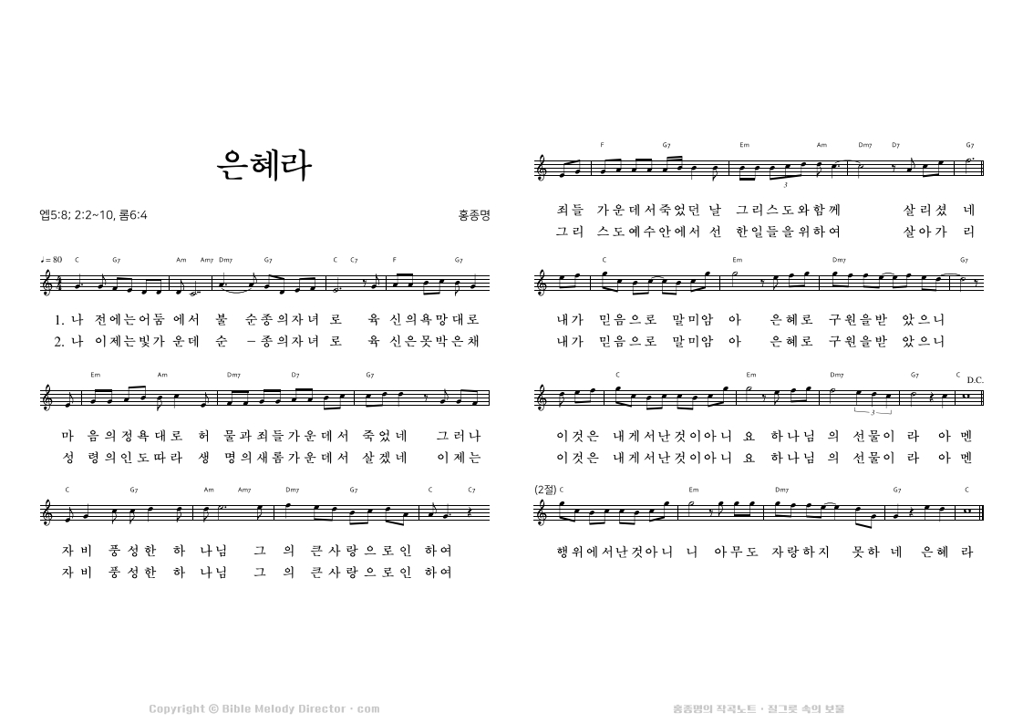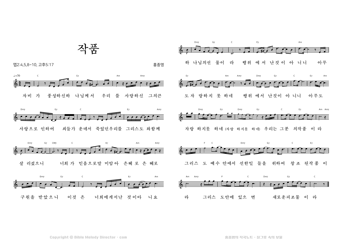 에베소서 5:8과 2:2~5,8~10, 로마서 6:5의 성경으로 홍종명이 시와 곡을 짓다. 20000515
