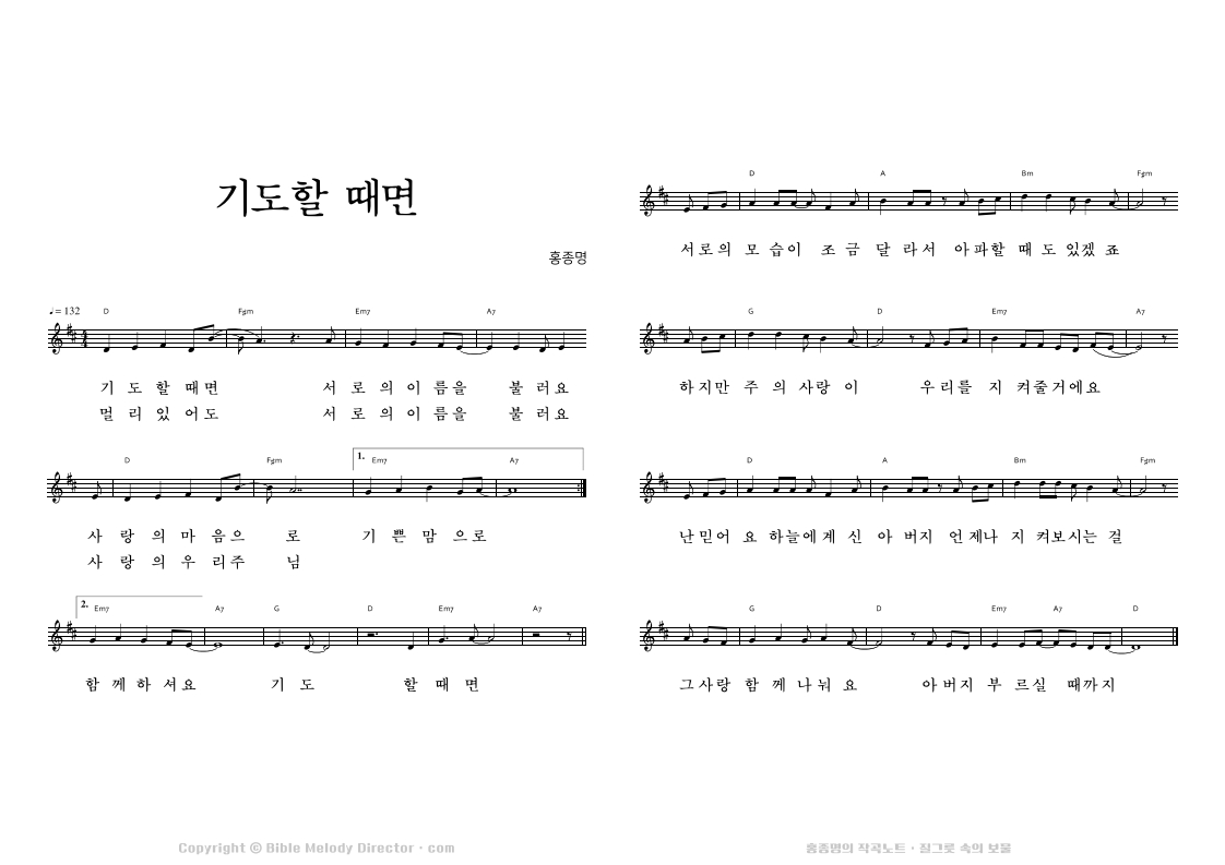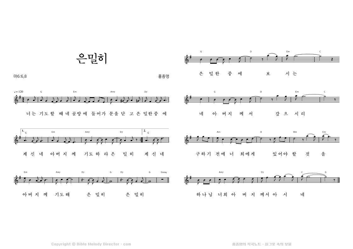 마태복음 6:6,8의 성경 가사에 홍종명이 곡을 짓다. 19951114