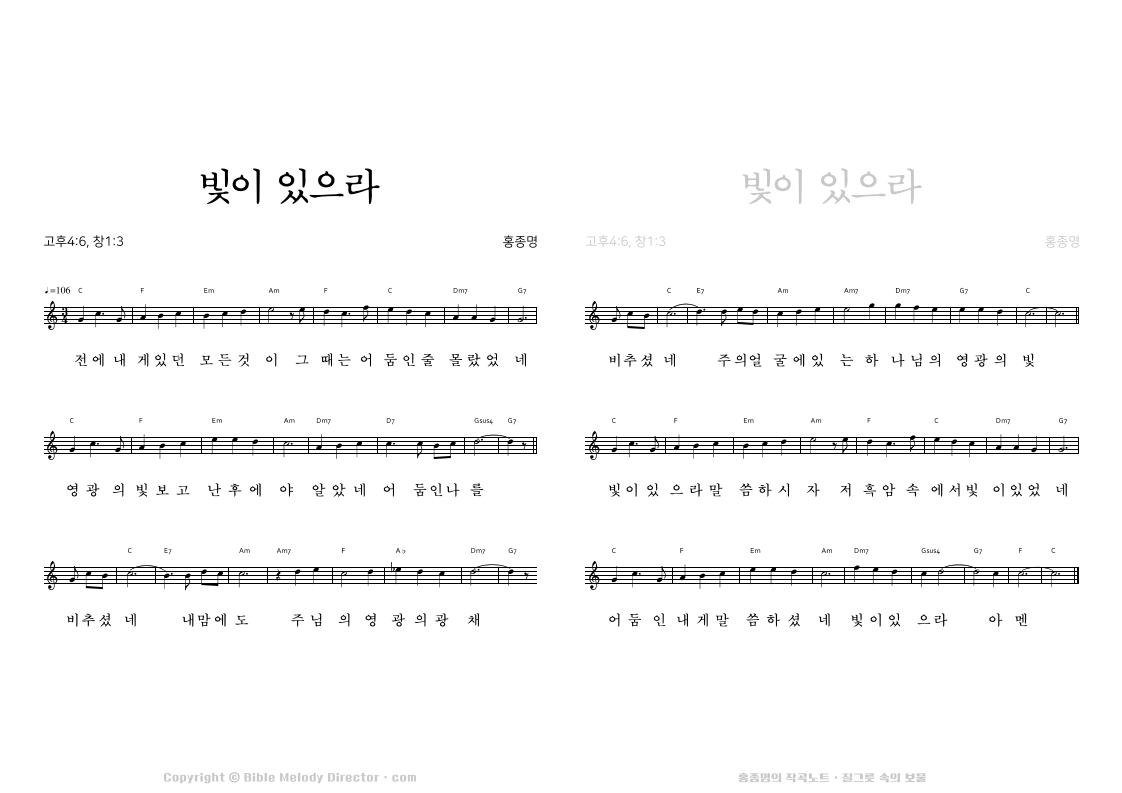 고린도후서 4:6과 창세기 1:3의 성경으로 홍종명이 시와 곡을 짓다. 19960111