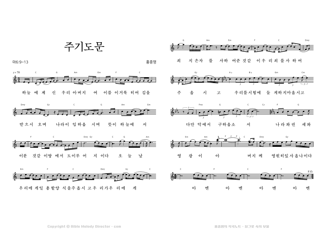 마태복음 6:9~13의 성경 가사에 홍종명이 곡을 짓다. 19951127